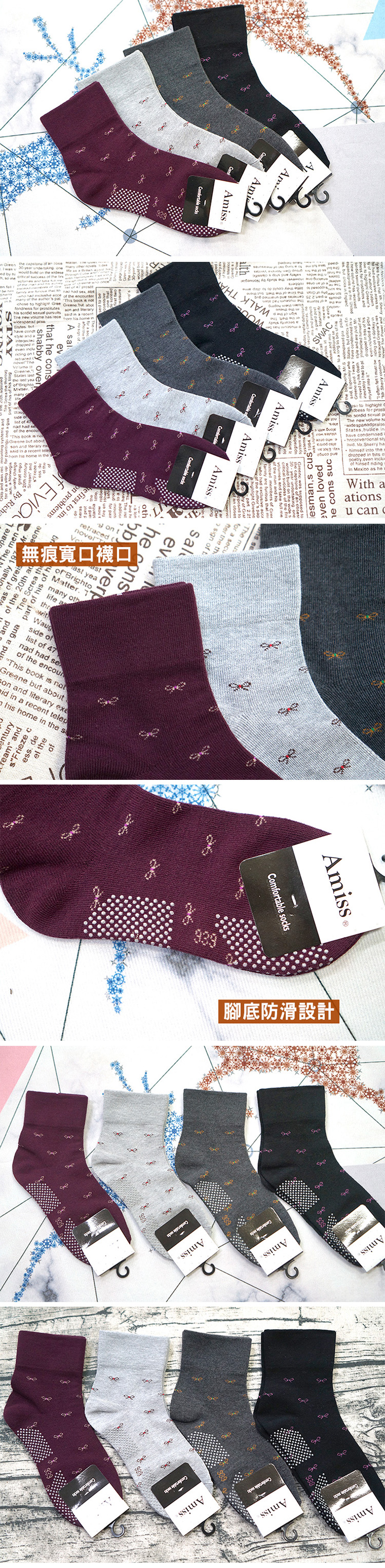 3101-8【寬口x純棉x防滑】無勒痕舒適樂齡襪-蝴蝶結